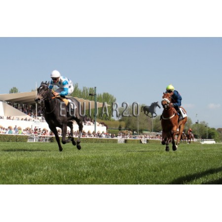 | P | Caballo | Peso | Jinete | Preparador | Propietario | Distancia | € | Div | |