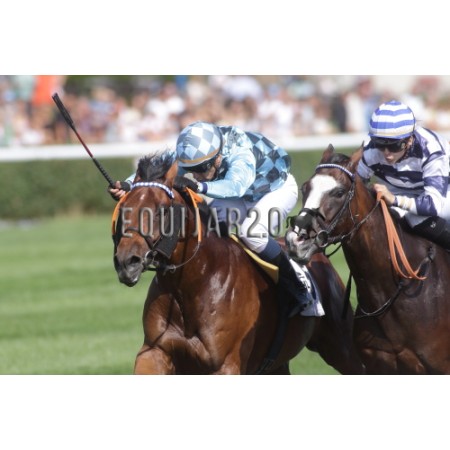 | P | Caballo | Peso | Jinete | Preparador | Propietario | Distancia | € | Div | |