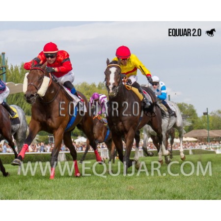 | P | Caballo | Peso | Jinete | Preparador | Propietario | Distancia | € | Div |