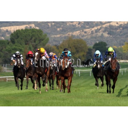 | P | Caballo | Peso | Jinete | Preparador | Propietario | Distancia | € | Div |