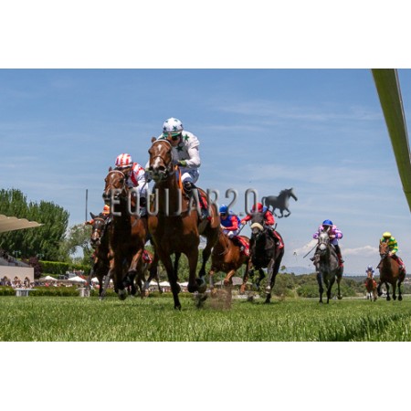 | P | Caballo | Peso | Jinete | Preparador | Propietario | Distancia | € | Div |