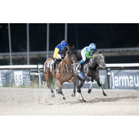 | P | Caballo | Peso | Jinete | Preparador | Propietario | Distancia | € | Div |