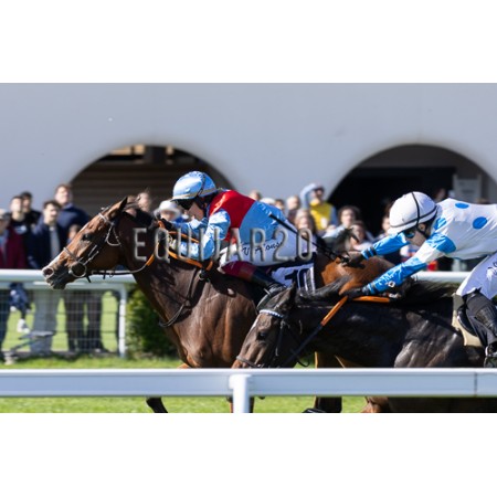 | P | Caballo | Peso | Jinete | Preparador | Propietario | Distancia | € | Div |