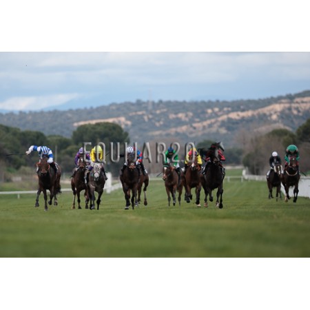 | P | Caballo | Peso | Jinete | Preparador | Propietario | Distancia | € | Div |