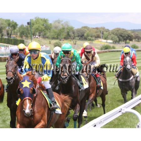 | P | Caballo | Peso | Jinete | Preparador | Propietario | Distancia | € | Div | |