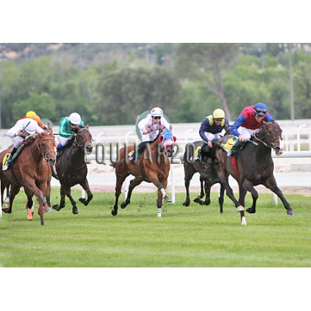 | P | Caballo | Peso | Jinete | Preparador | Propietario | Distancia | € | Div | |