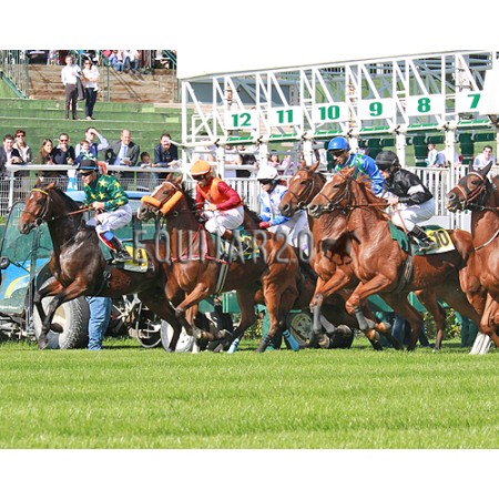 | P | Caballo | Peso | Jinete | Preparador | Propietario | Distancia | € | Div | |