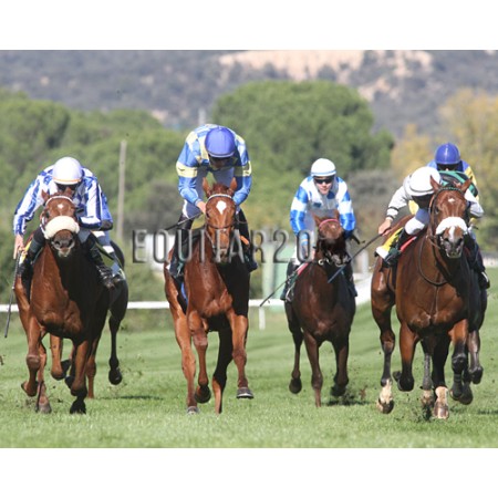 | P | Caballo | Peso | Jinete | Preparador | Propietario | Distancia | € | Div | |