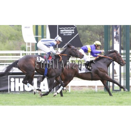 | P | Caballo | Peso | Jinete | Preparador | Propietario | Distancia | € | Div |