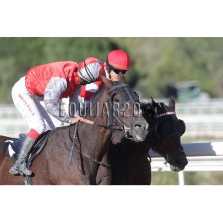| P | Caballo | Peso | Jinete | Preparador | Propietario | Distancia | € | Div | |