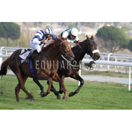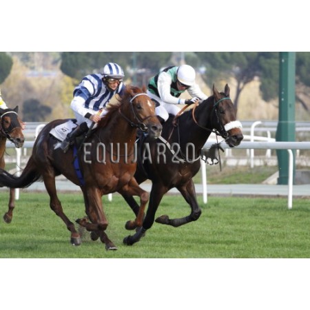 | P | Caballo | Peso | Jinete | Preparador | Propietario | Distancia | € | Div | |