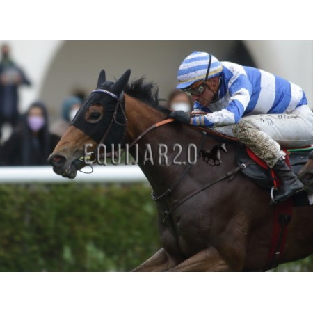 | P | Caballo | Peso | Jinete | Preparador | Propietario | Distancia | € | Div |
