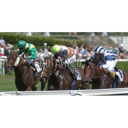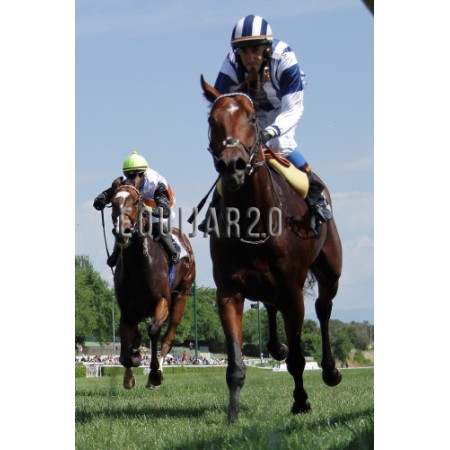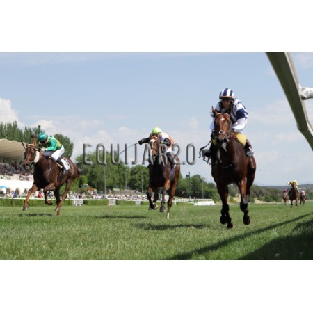 | P | Caballo | Peso | Jinete | Preparador | Propietario | Distancia | € | Div |
