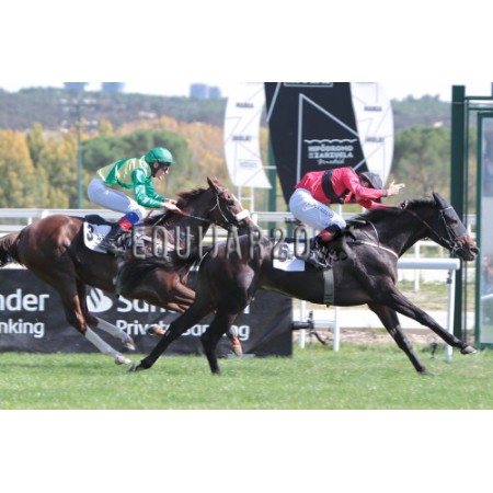| P | Caballo | Peso | Jinete | Preparador | Propietario | Distancia | € | Div | |