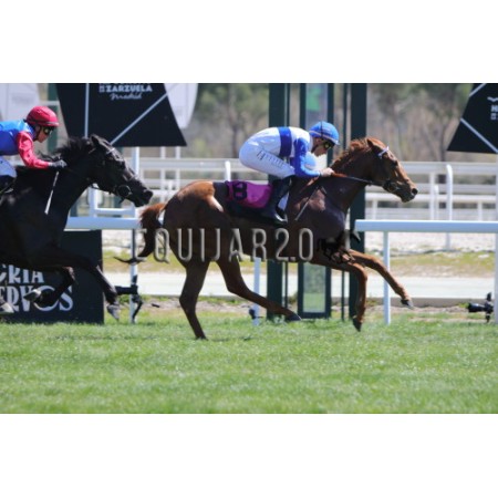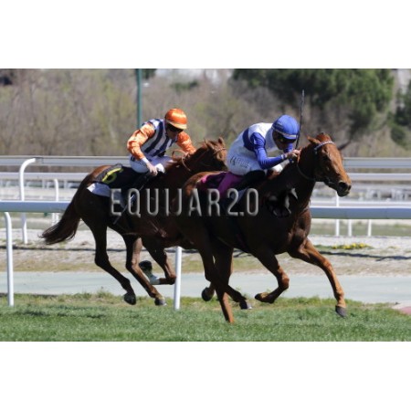 | P | Caballo | Peso | Jinete | Preparador | Propietario | Distancia | € | Div |