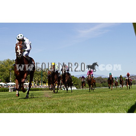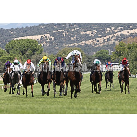 | P | Caballo | Peso | Jinete | Preparador | Propietario | Distancia | € | Div |