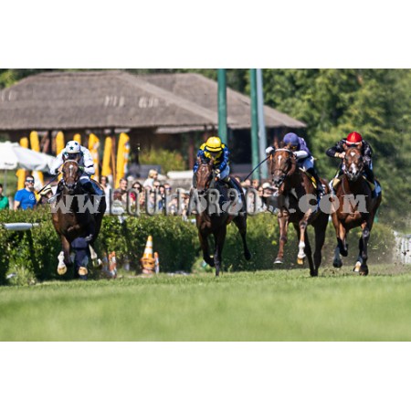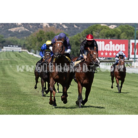 | P | Caballo | Peso | Jinete | Preparador | Propietario | Distancia | € | Div |