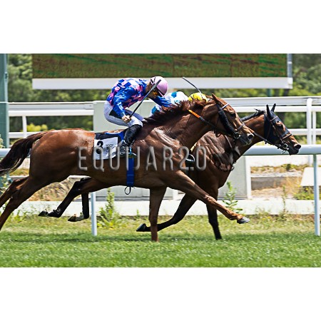 | P | Caballo | Peso | Jinete | Preparador | Propietario | Distancia | € | Div |