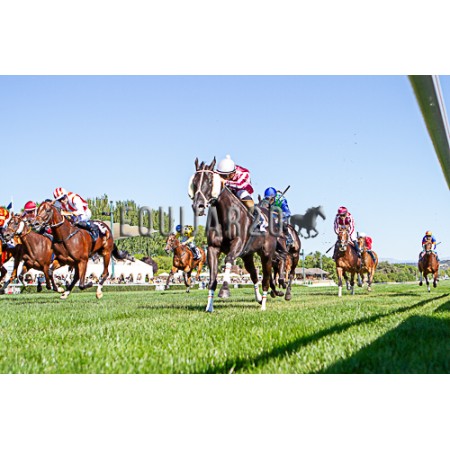 | P | Caballo | Peso | Jinete | Preparador | Propietario | Distancia | € | Div |
