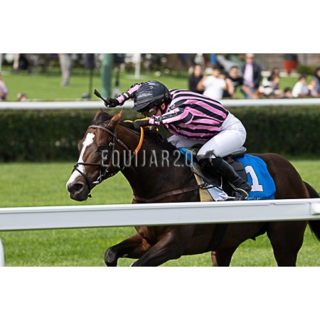 | P | Caballo | Peso | Jinete | Preparador | Propietario | Distancia | € | Div |