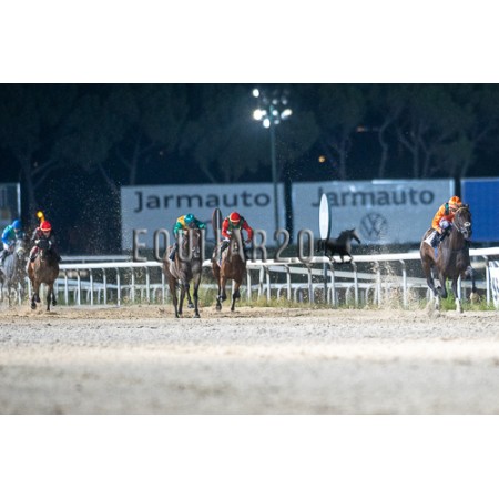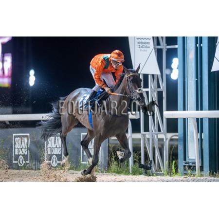 | P | Caballo | Peso | Jinete | Preparador | Propietario | Distancia | € | Div |