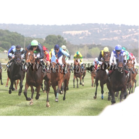 | P | Caballo | Peso | Jinete | Preparador | Propietario | Distancia | € | Div |