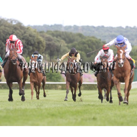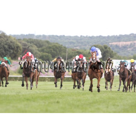 | P | Caballo | Peso | Jinete | Preparador | Propietario | Distancia | € | Div |