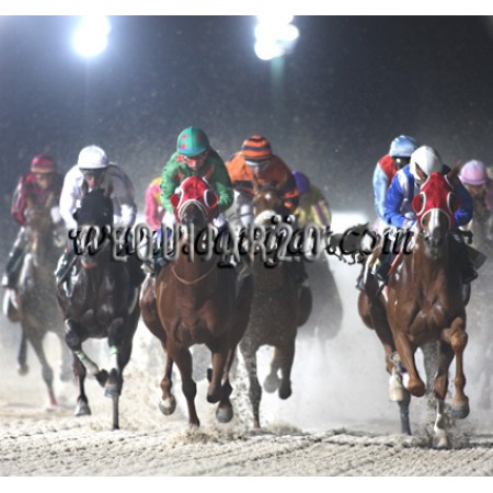 | P | Caballo | Peso | Jinete | Preparador | Propietario | Distancia | € | Div |
