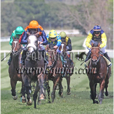 | P | Caballo | Peso | Jinete | Preparador | Propietario | Distancia | € | Div | |