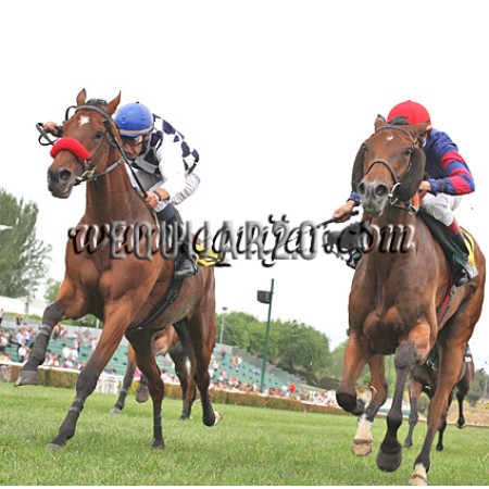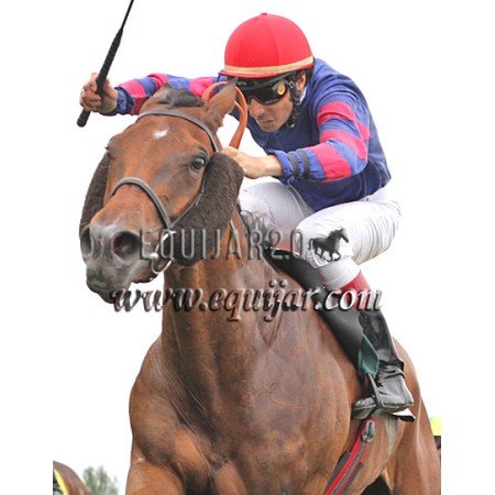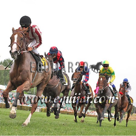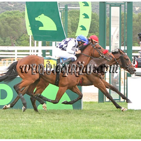 | P | Caballo | Peso | Jinete | Preparador | Propietario | Distancia | € | Div |