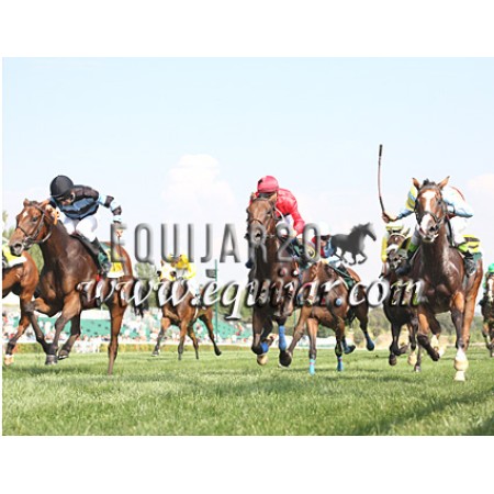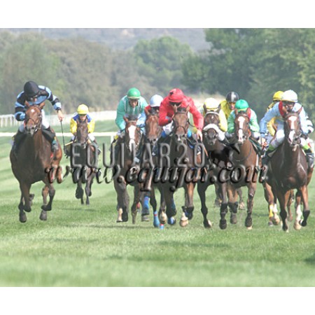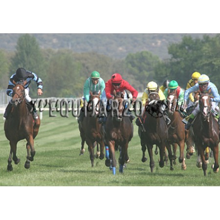 | P | Caballo | Peso | Jinete | Preparador | Propietario | Distancia | € | Div |