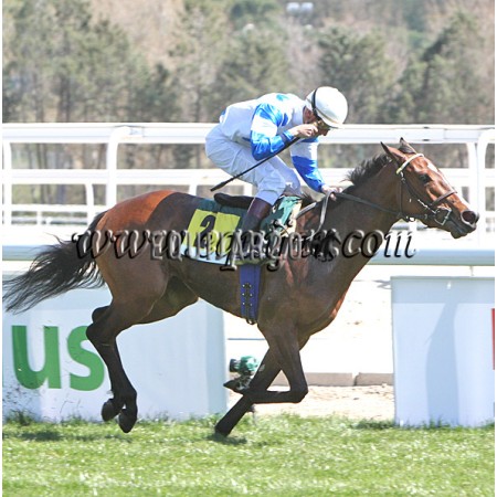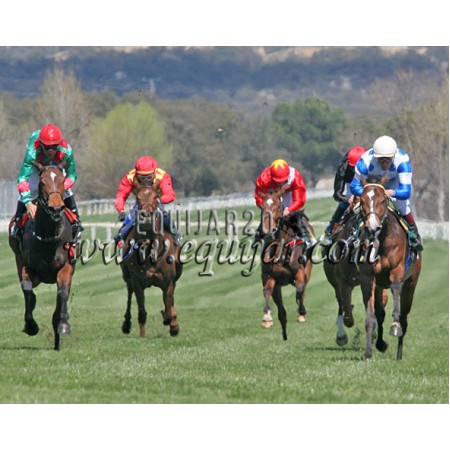 | P | Caballo | Peso | Jinete | Preparador | Propietario | Distancia | € | Div |