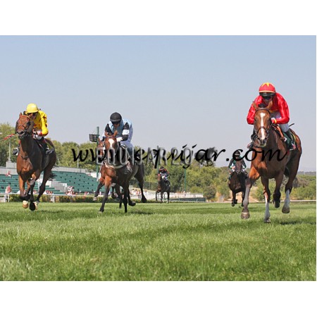 | P | Caballo | Peso | Jinete | Preparador | Propietario | Distancia | € | Div |
