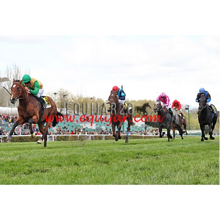| P | Caballo | Peso | Jinete | Preparador | Propietario | Distancia | € | Div | |
