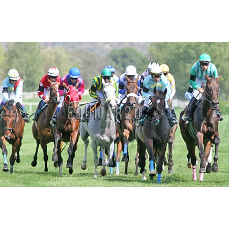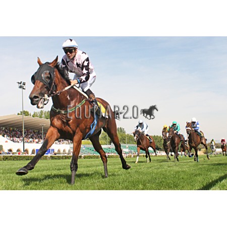 | P | Caballo | Peso | Jinete | Preparador | Propietario | Distancia | € | Div |