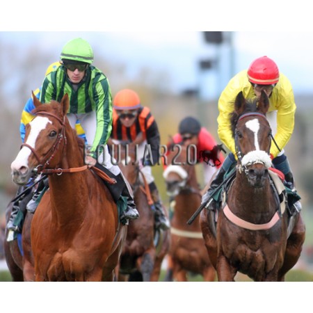 | P | Caballo | Peso | Jinete | Preparador | Propietario | Distancia | € | Div |