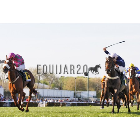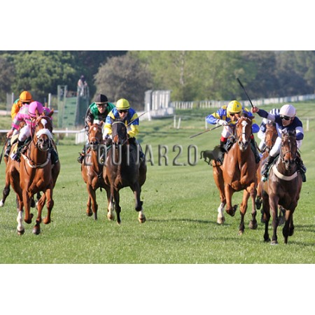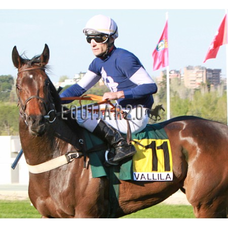 | P | Caballo | Peso | Jinete | Preparador | Propietario | Distancia | € | Div |