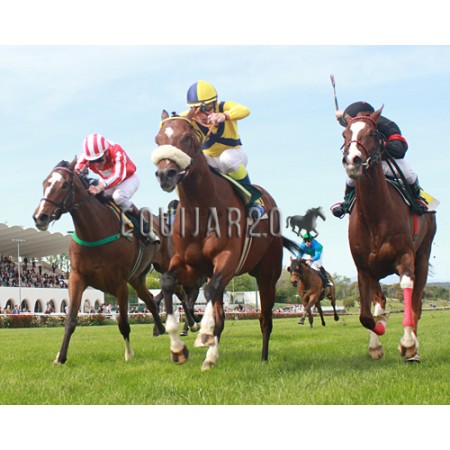 | P | Caballo | Peso | Jinete | Preparador | Propietario | Distancia | € | Div |