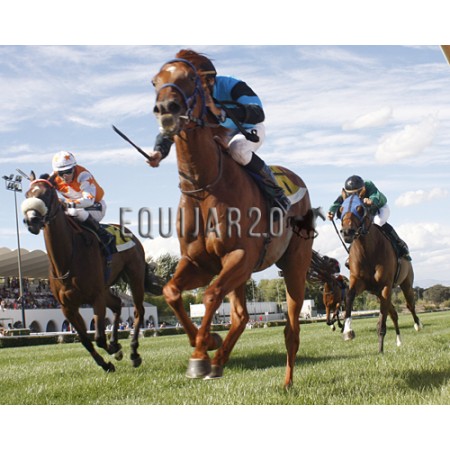 | P | Caballo | Peso | Jinete | Preparador | Propietario | Distancia | € | Div |