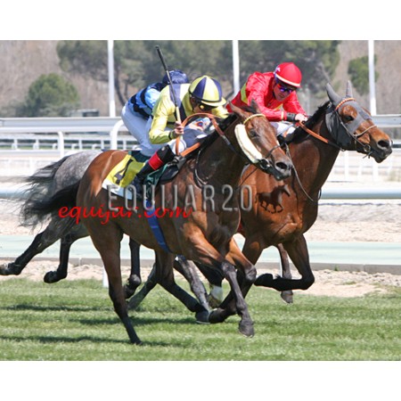 | P | Caballo | Peso | Jinete | Preparador | Propietario | Distancia | € | Div | |
