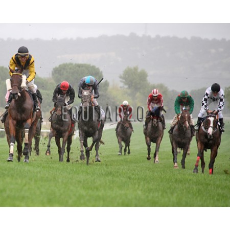 | P | Caballo | Peso | Jinete | Preparador | Propietario | Distancia | € | Div |