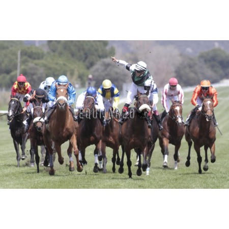 | P | Caballo | Peso | Jinete | Preparador | Propietario | Distancia | € | Div |
