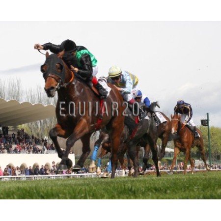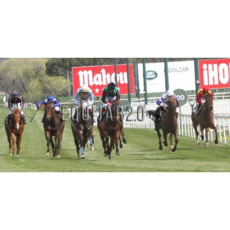 | P | Caballo | Peso | Jinete | Preparador | Propietario | Distancia | € | Div |