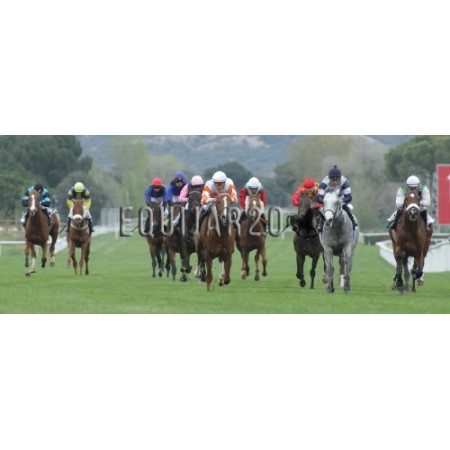 | P | Caballo | Peso | Jinete | Preparador | Propietario | Distancia | € | Div |