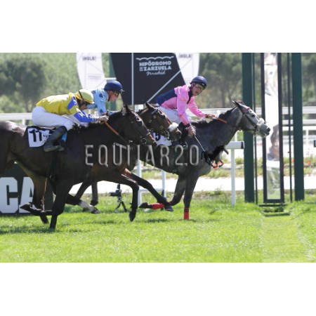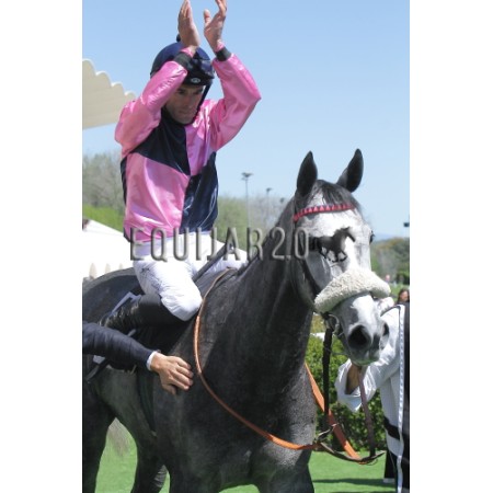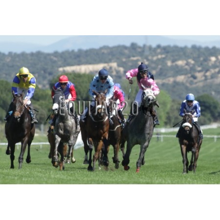 | P | Caballo | Peso | Jinete | Preparador | Propietario | Distancia | € | Div |