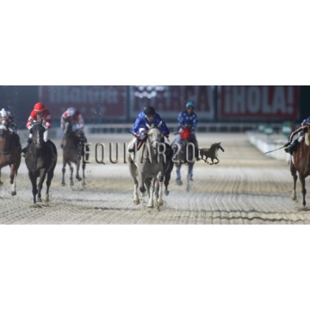 | P | Caballo | Peso | Jinete | Preparador | Propietario | Distancia | € | Div |