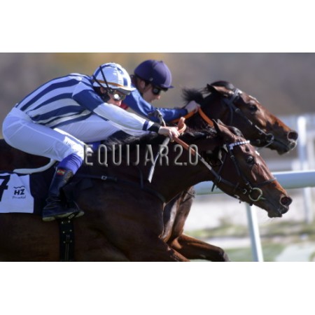 | P | Caballo | Peso | Jinete | Preparador | Propietario | Distancia | € | Div |